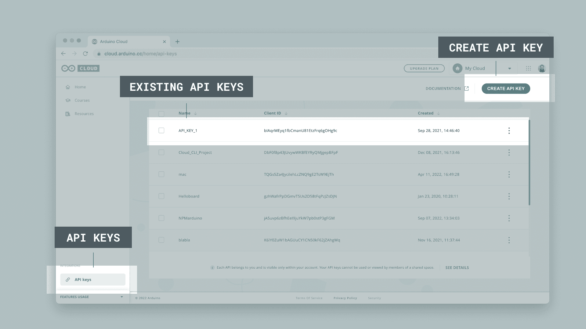 To authenticate with the Arduino Cloud API, you will need to set up an Arduino Account. How to generate API credentials will be explained in this article.