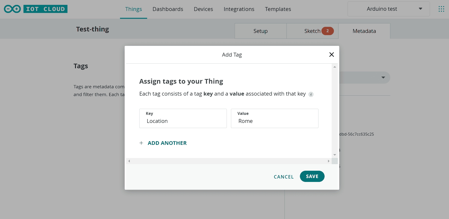 If you want to create your tag, which you can use as a filtering option, go to Things tab, click on the Thing you would like to tag and go to the Metadata tab as shown in the figure below.