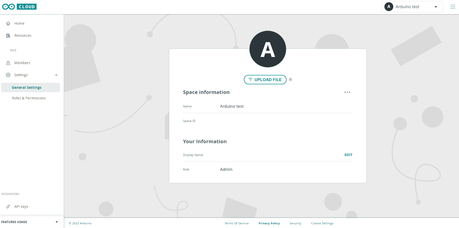 Arduino Cloud > General Settings > Space information > Edit info > Name.Your Arduino Cloud for Business plan comes with two spaces by default:
