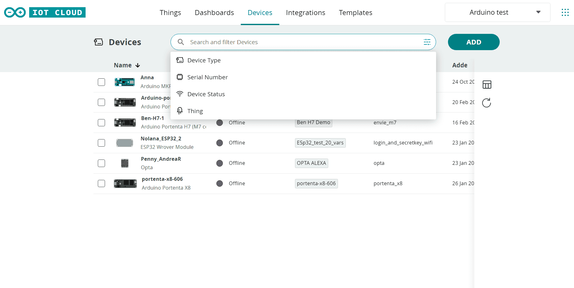 Get started with this awesome feature by going to Things or Devices tab in Arduino Cloud and start searching and filtering among your Things/devices.