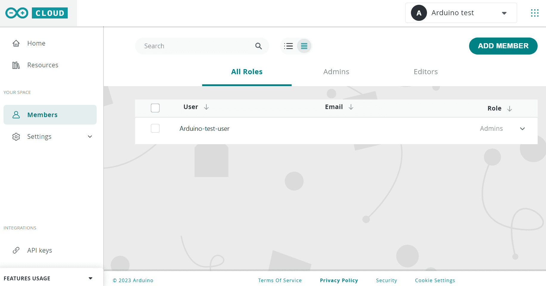 We strongly recommend you add a Service Account role to your Shared Space to create/manage/maintain API Keys Tokens. The Service Account should not be linked to a personal email account so that the API Keys which will be created do not risk getting lost if that email account gets canceled.