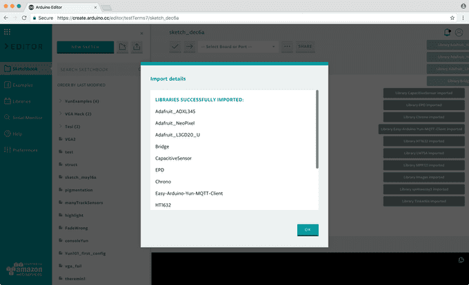 But what if you want to use your own custom library on the Web IDE? Just zip your custom library and click on the 'Import' button on the Library panel.