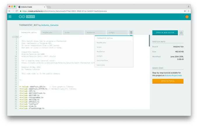 The Arduino sketch is the unit that can include everything you need to bring an idea to life. With the Share feature of the Web Editor you can simply give someone access to your sketches just by sending them a URL, or by embedding the sketch into a webpage or in a Project Hub tutorial.
