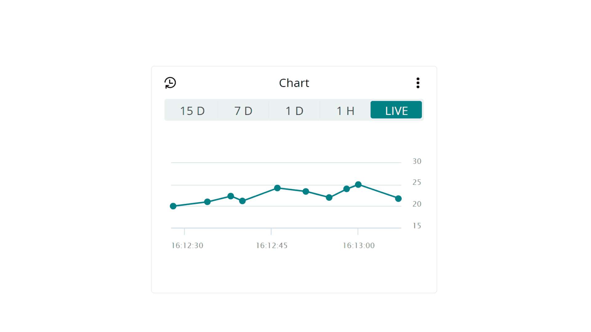 The chart widget is great for data analytics. It's used to track real-time data, and track historical data. This widget can for example be used to track temperature changes, energy consumption and other sensor values. A chart widget can only be linked to one variable at a time.