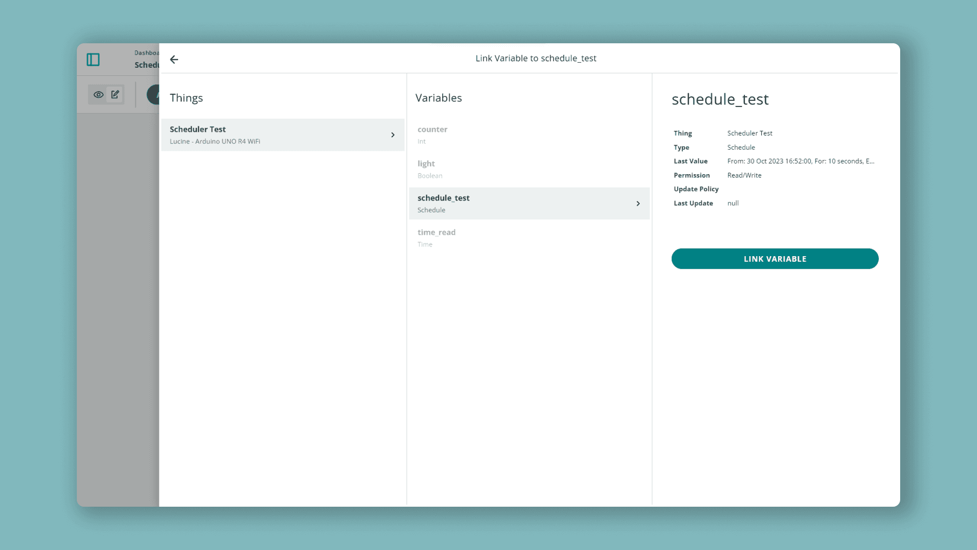 - If you can't link a widget to a variable, you may have selected the wrong variable type. The scheduler widget will only work with the scheduler variable.