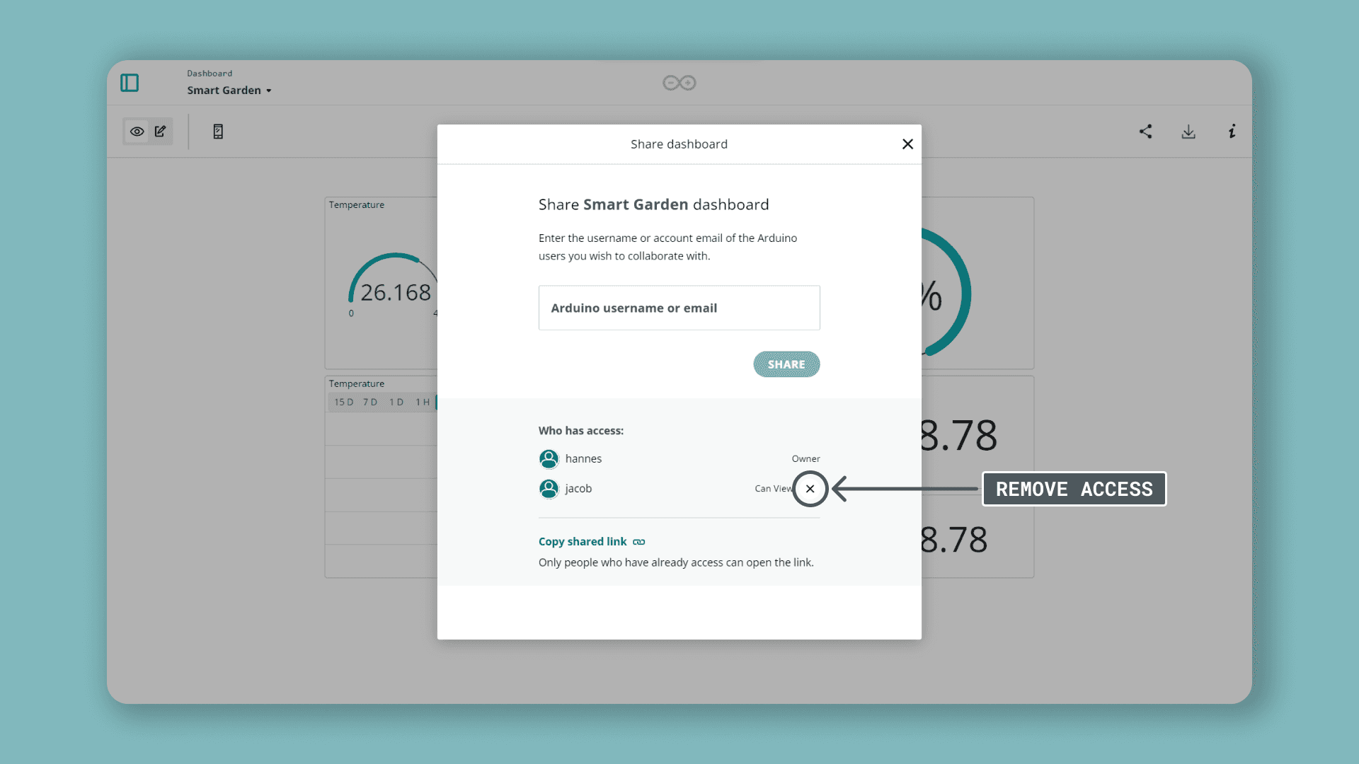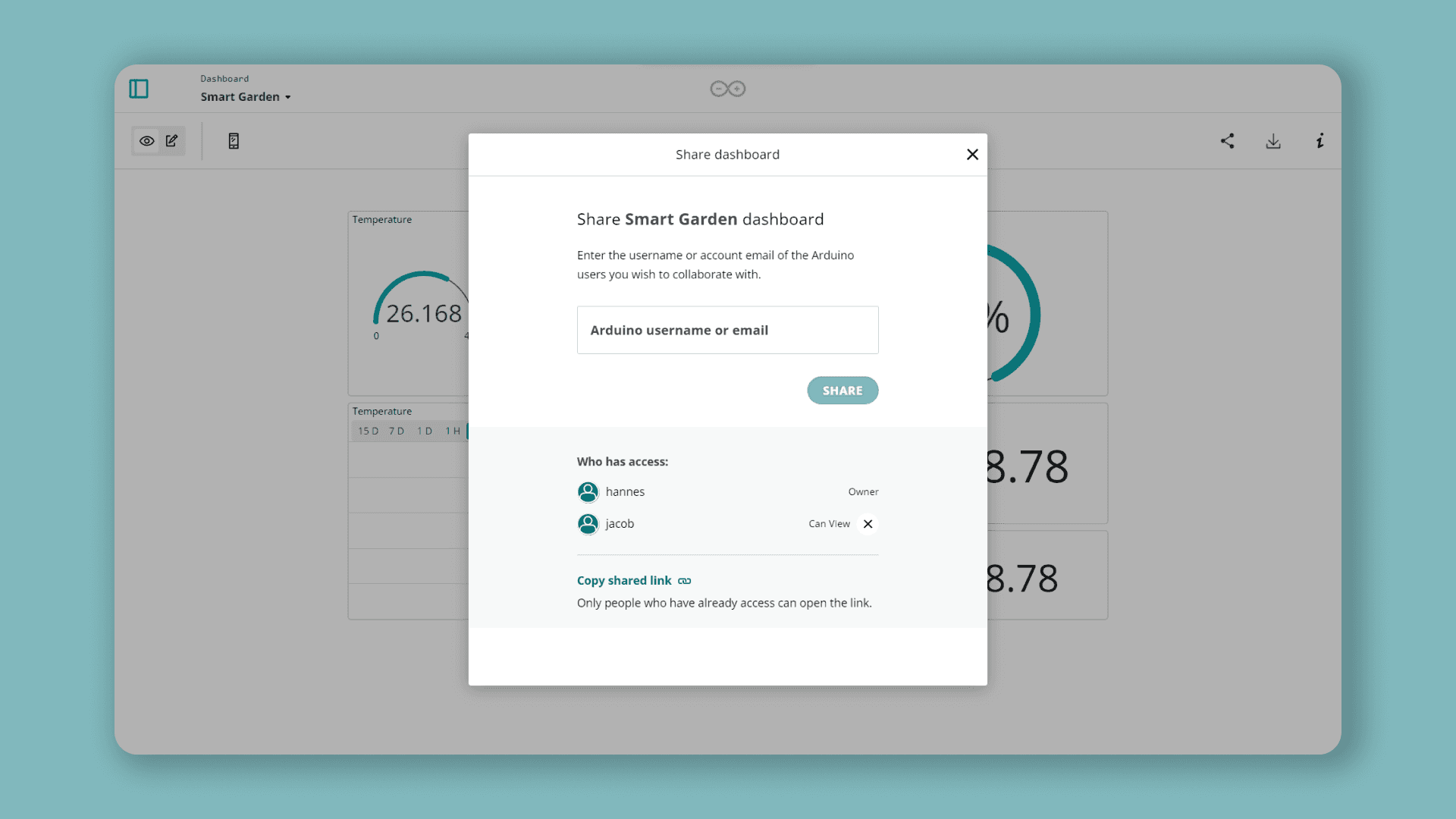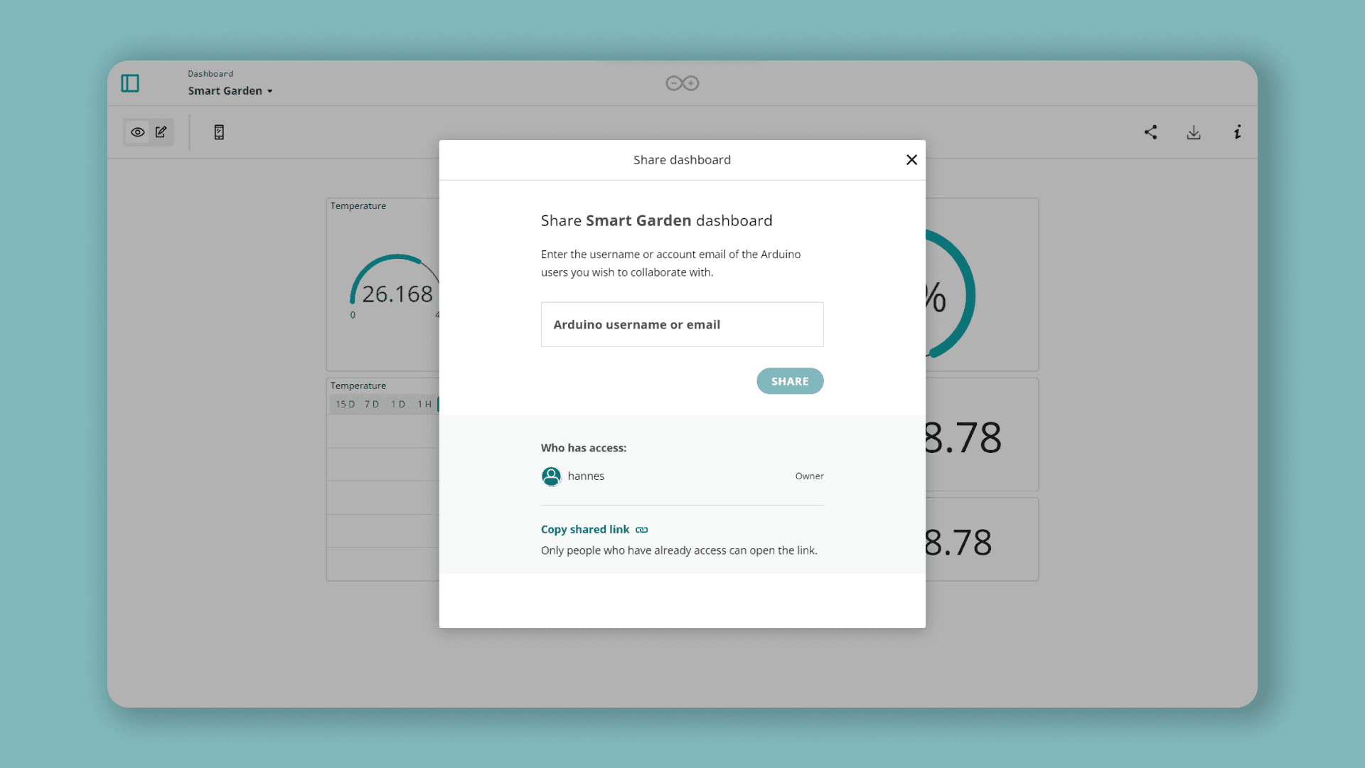 In this tutorial, we will show how to share these dashboards with other Arduino Cloud users!
