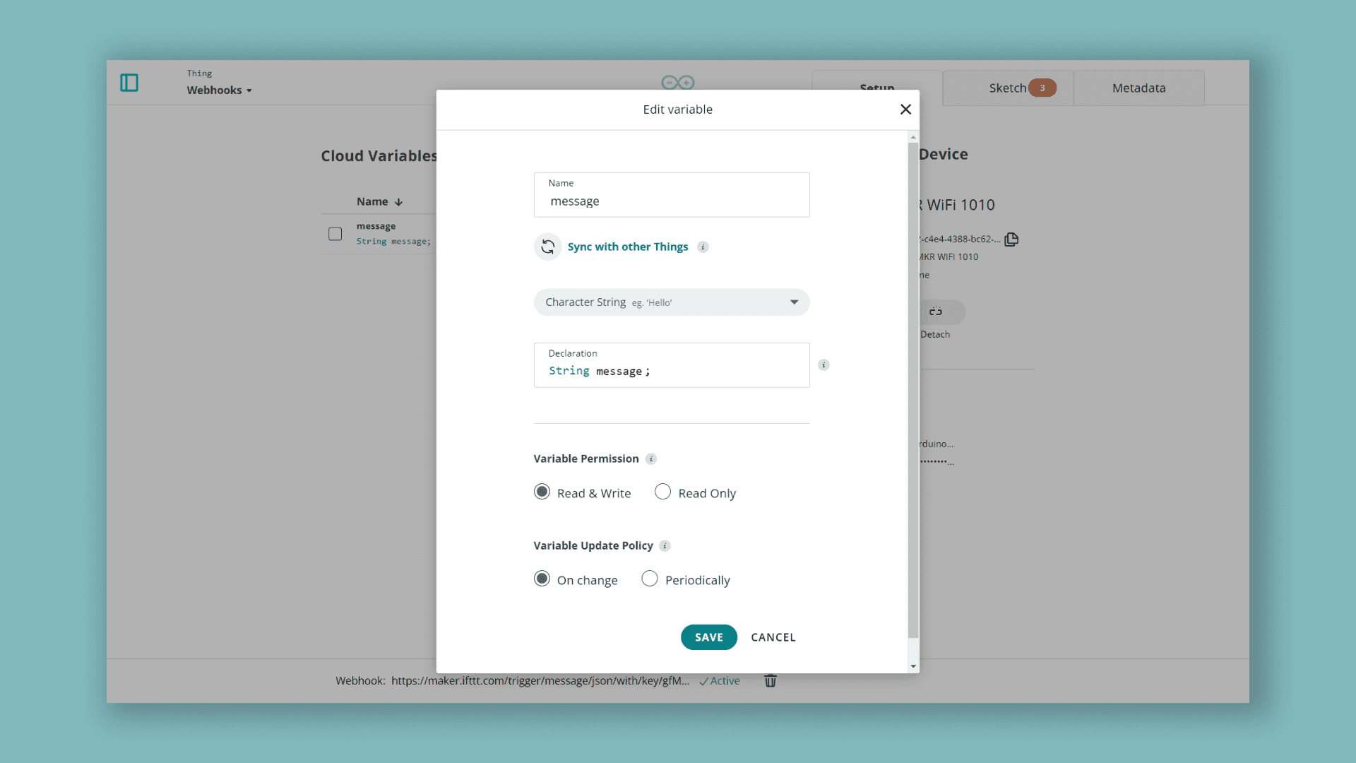 Learn how to setup webhooks with the Arduino Cloud to work with third party platforms such as IFTTT.