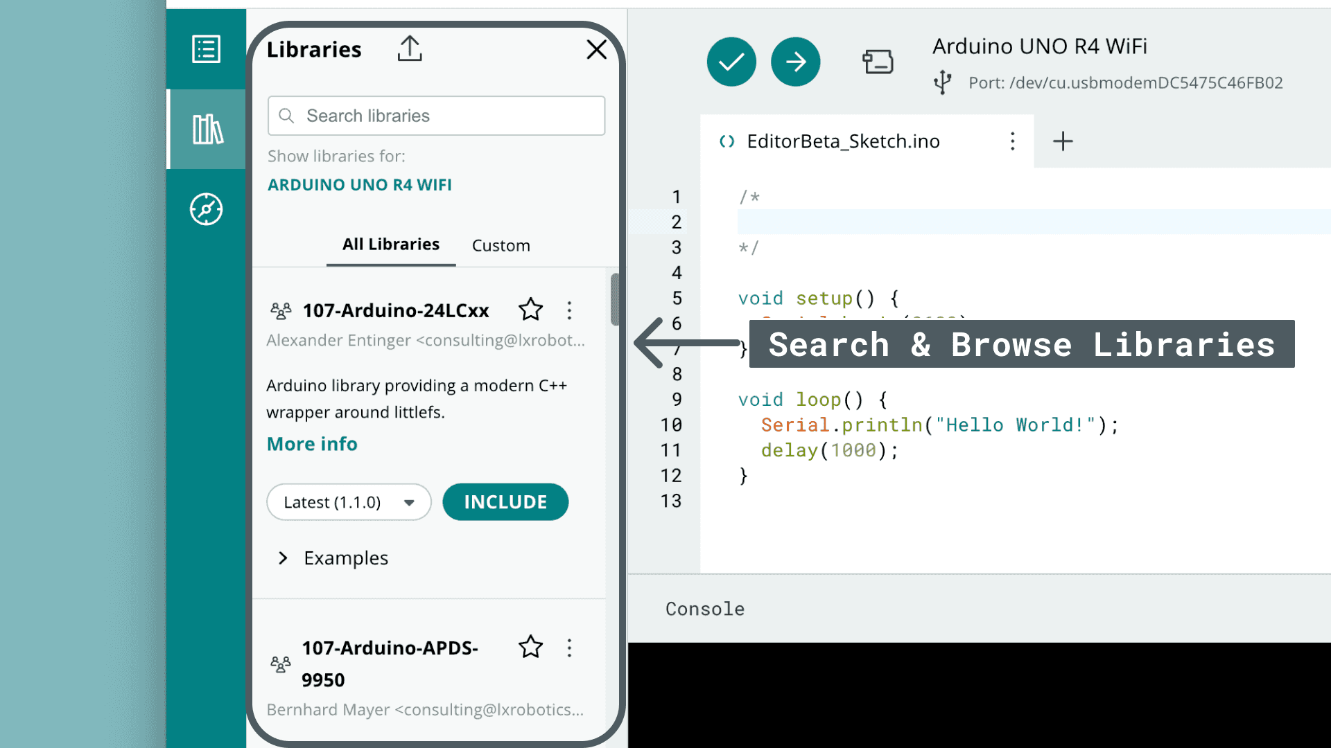 The library manager allows you to search & browse through all availables that exist in the Arduino Library Manager, which as of 2024 was 5000+.