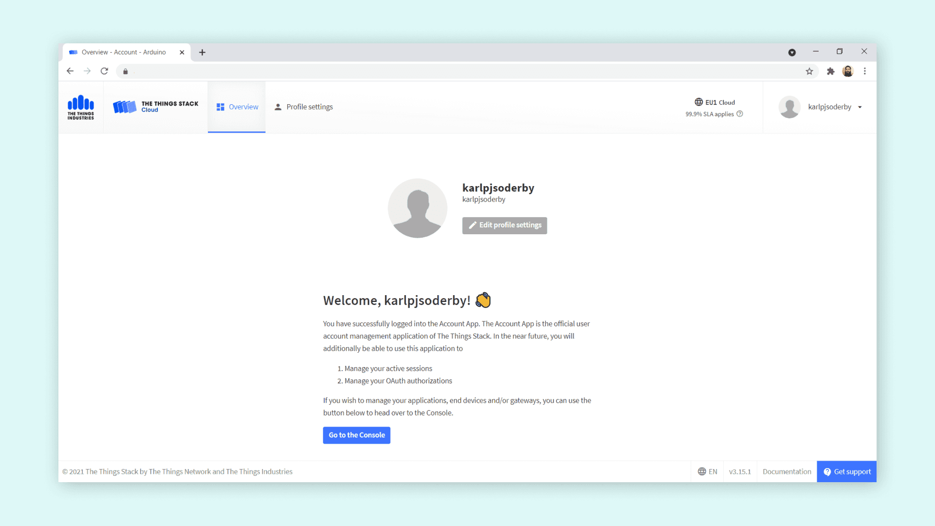 In this step, we will complete the registration so we can access the The Things Console (TTC). Here we can see the status of our device, if any data is coming in or out and much more.