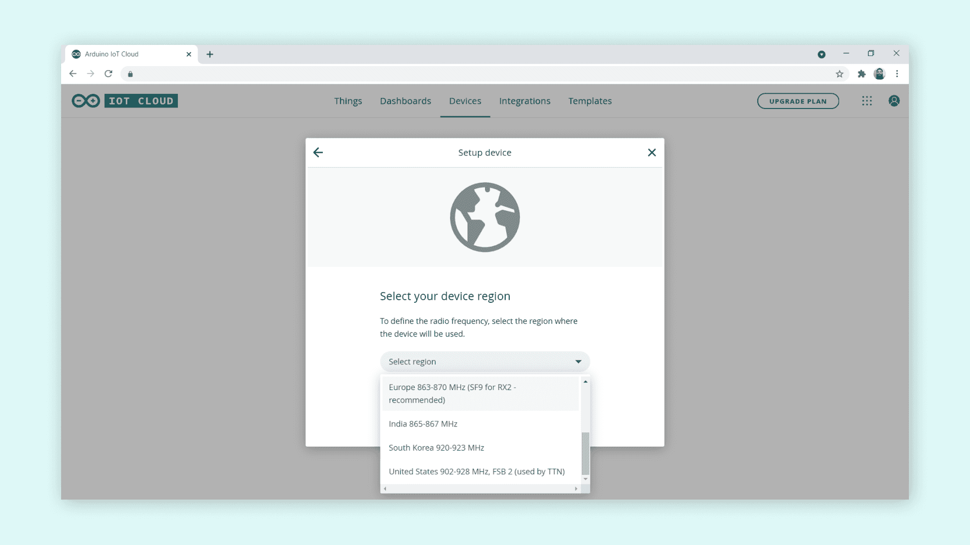 - Configure a LoRaWAN® device in the Arduino Cloud.