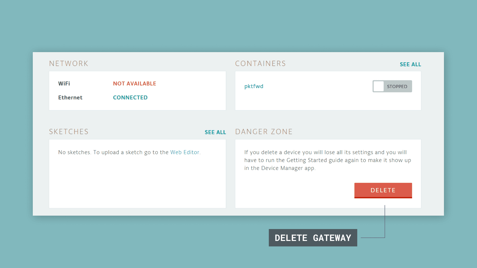 3. Delete the device using the “Manager for Linux” page. It is very important that the Gateway is turned on and connected to the Internet.