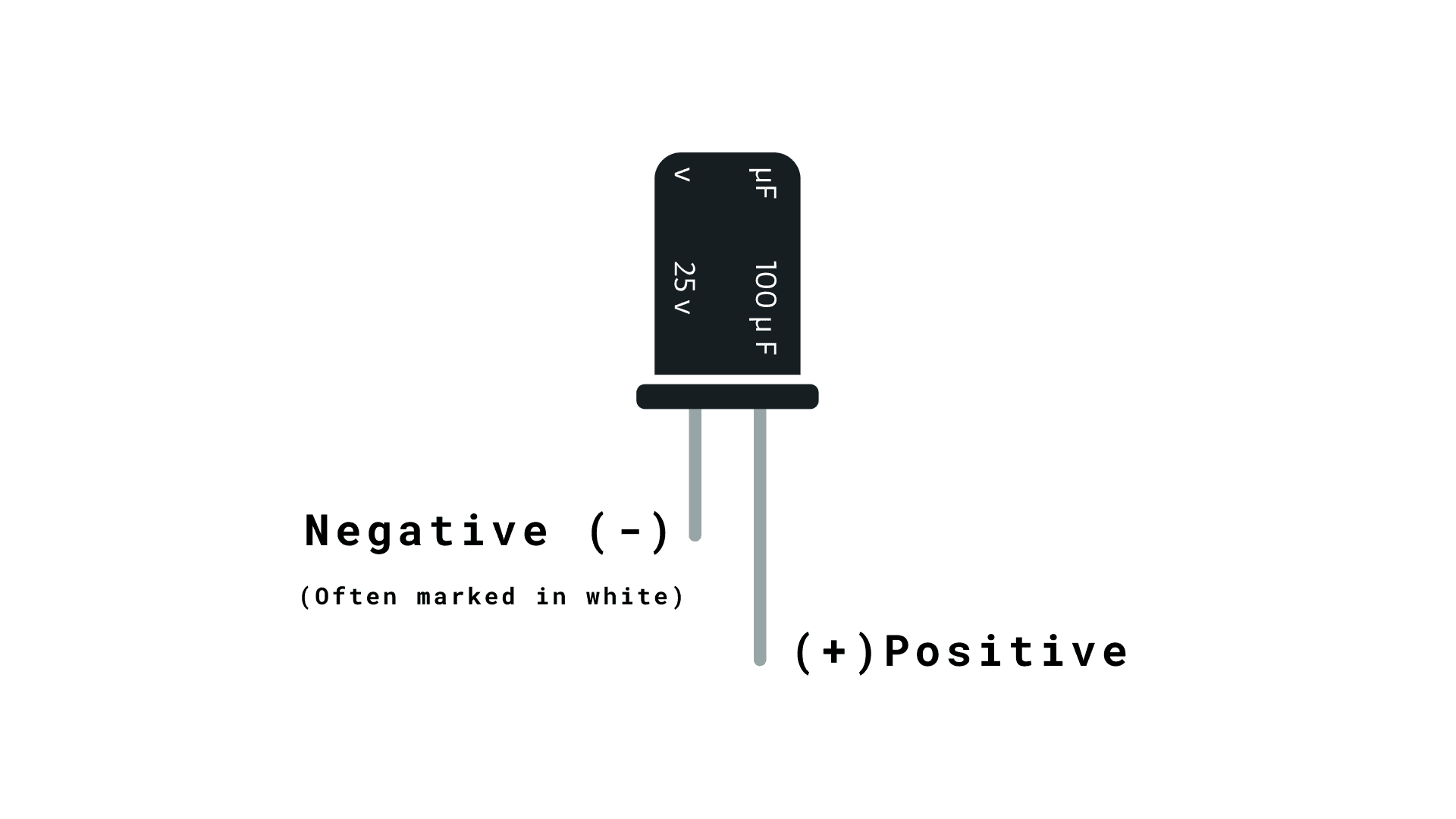 Because some capacitors are polarised (meaning that they have a direction), you may need to be careful with how you connect them to your circuit. Make sure to connect them correctly by checking for markings such as a white stripe, a '+' symbol, or a longer lead. If your capacitor has these, match the indicators of the capacitor with your circuit (pay attention to the + and - signs), and be careful not to exceed the voltage limits. This precaution helps prevent issues like leaks or damage that could harm your circuit.