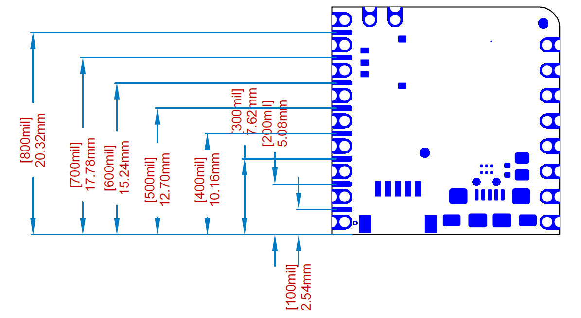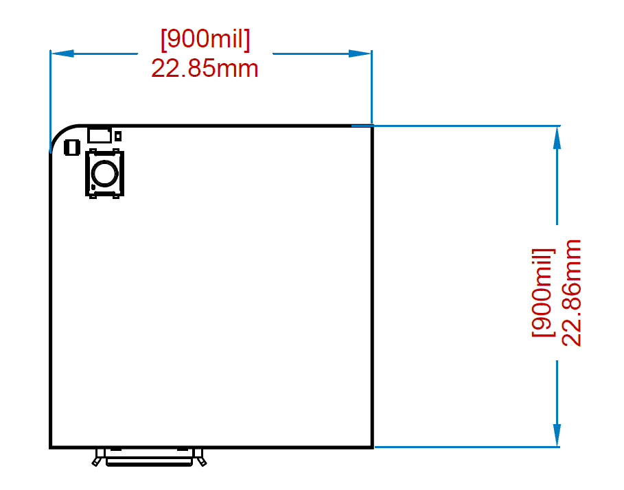 Nicla form factor shape is a square with 900 mils edge length, excluding the protrusions of connectors which are meant to be passing though a case. Although board is square its shape and its connectors are asymmetric to prevent connecting the board in the wrong orientation.