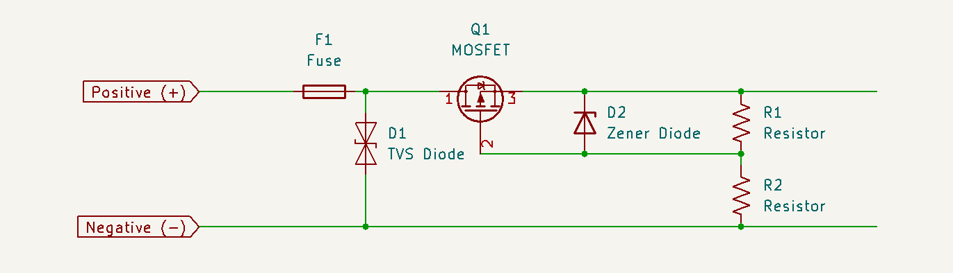 The key points of the circuit presented above are the Transient Voltage Suppressor diode and the MOSFET of P-Channel type. This protection circuit will help you save the Protected Load and to have it as a good reference for protection design. Although due to its electric components, it becomes a little more advanced to cover in the scope of this guide.