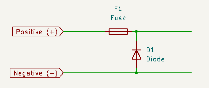 This simple reverse polarity protection circuit uses a fuse and a diode that later connects to the electronic circuit, which can be referred to as the load.