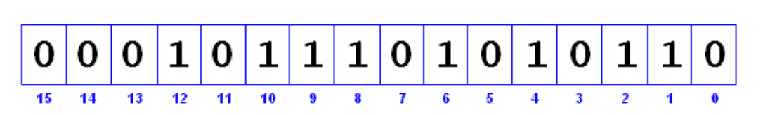 In this quick reference, we refer to the bits in a 16-bit integer starting with the least significant bit as bit 0, and the most significant bit (the sign bit if the integer is signed) as bit 15, as illustrated in this diagram: