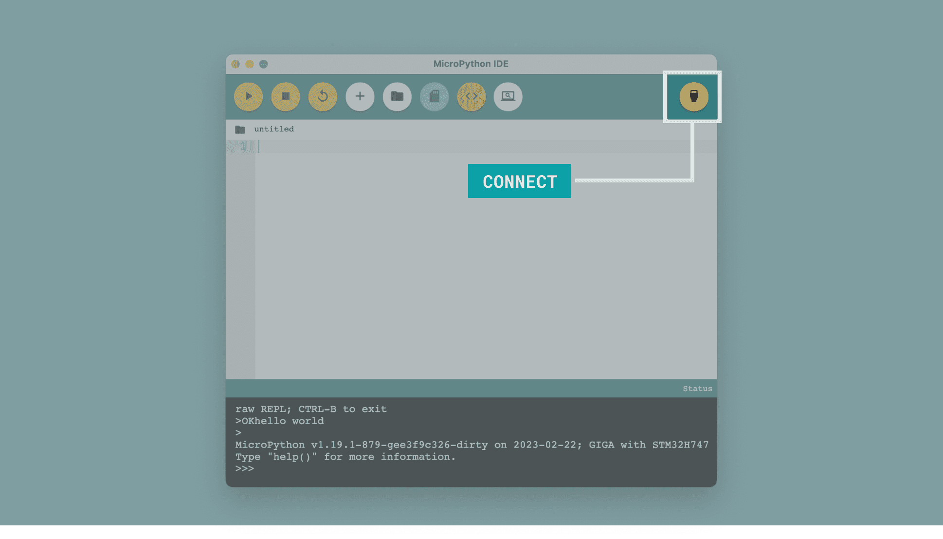 Now that you have connected your board, let’s create a file that will contain the script that will run on your board. Click on New button to create your file. The editor automatically creates the main file in the board.
