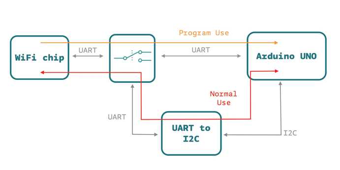 On the Arduino UNO WiFi there’s a SC16IS750IBS IO Expander Single UART with I2C-bus/SPI interface that allows the communication between AtMega 16u2, AtMega 328p and the ESP8266EX.