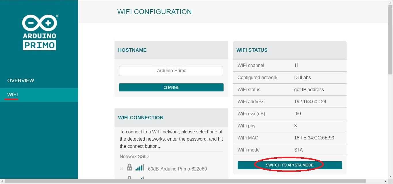 Your Arduino Primo needs a first configuration to join your WiFi network and it allows you to enter the relevant information creating its own Access Point. Please execute the following procedure every time you bring Arduino Primo in a location where the WiFi network access needs to be reconfigured.