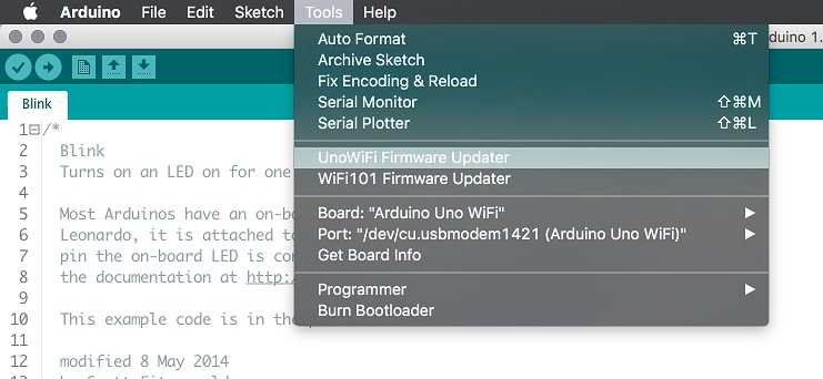 To simplify the process, we have prepared a tool - UNO WiFiFirmwareUpdater - available in Arduino IDE 1.8.0 or later.
