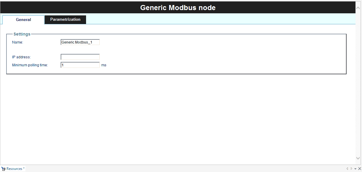 - Generic Modbus Configure the device name, Modbus address and the minimum polling time.