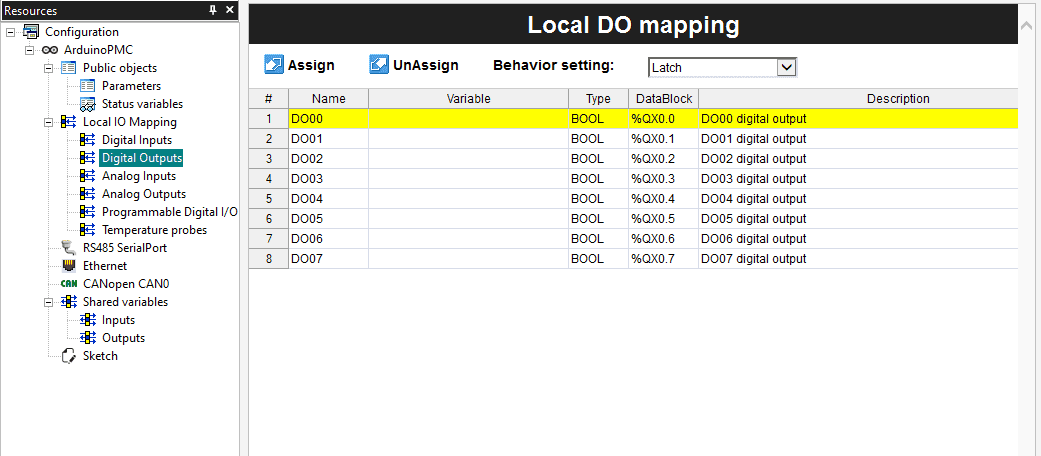 Navigate to the Resources tile window and you will see a list of the available mappings for your device. In the case of the Portenta Machine Control you have: