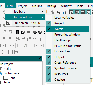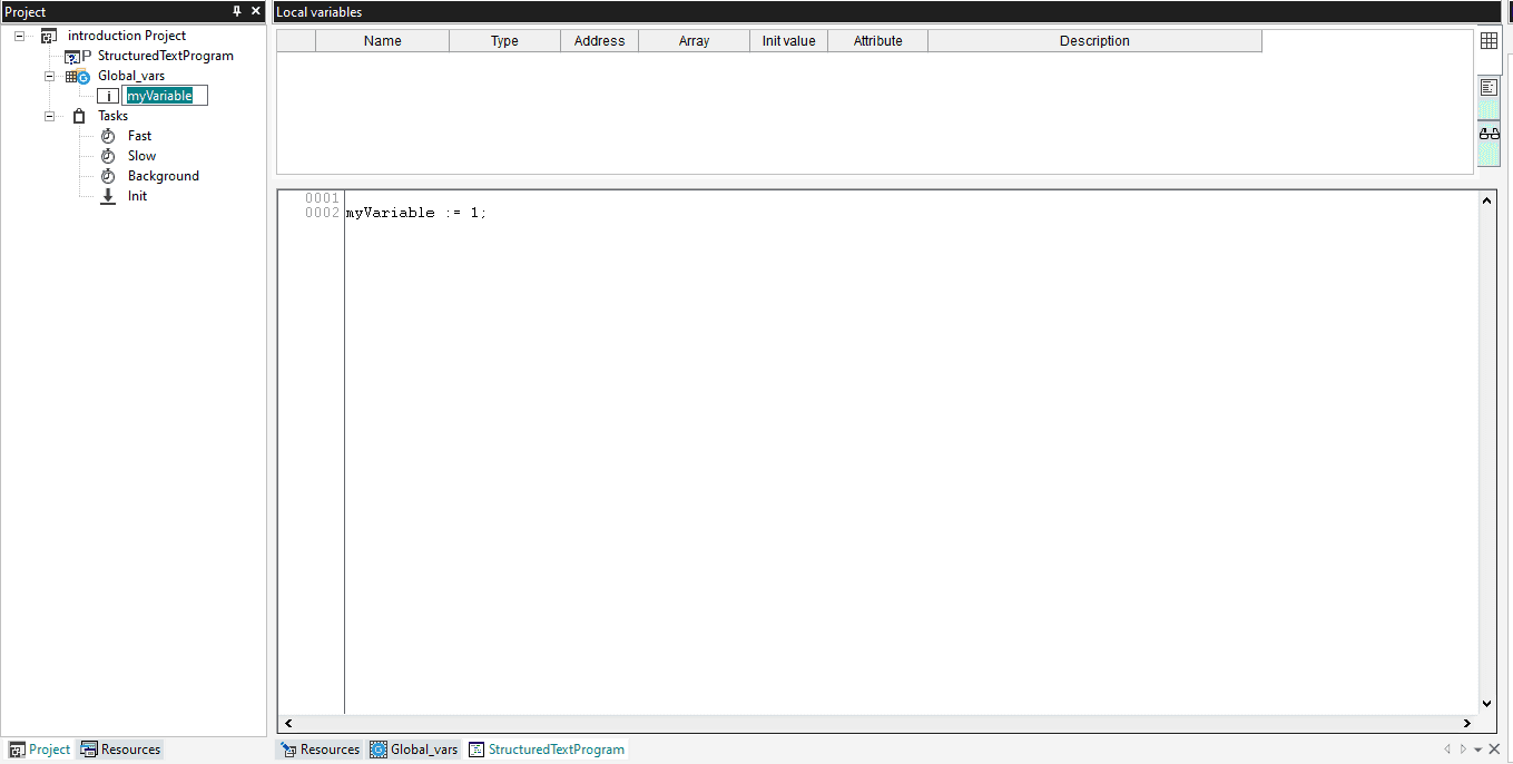 Go inside the Project tab and select a program by double-clicking it, once it has been opened you will see a Local Variables table on the top panel.