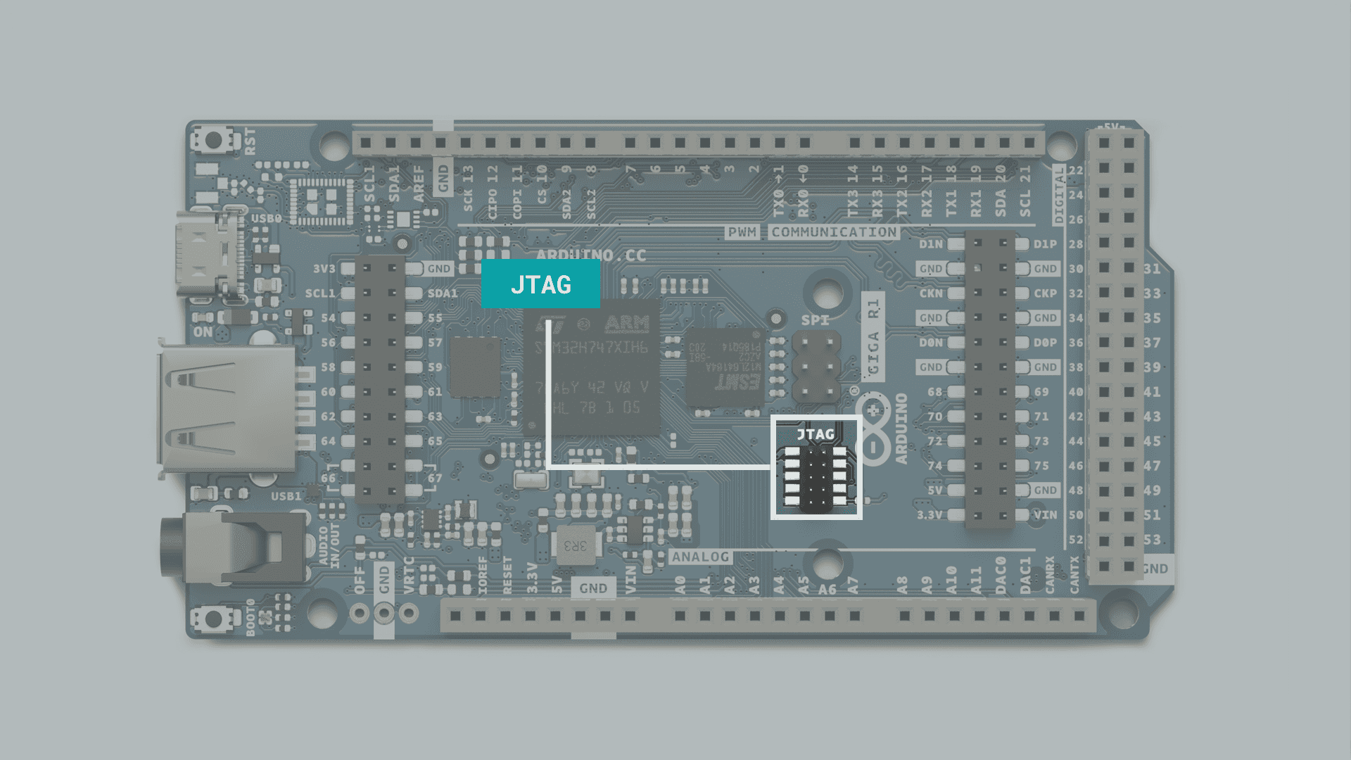 The Arduino GIGA R1 is one of our most feature-packed Arduino boards to date, supported by the same powerful, ML-capable, dual-core microcontroller found in the Pro family's Portenta H7. It features support for display connectors, USB-host, an Audio Jack, an Arducam connector, a CAN bus, 4 UART Serial Ports, 2 I2C buses, dedicated DAC Pins, and much, much more.