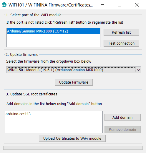 - How to update the firmware and loading certificates on the MKR1000 WiFi and WiFi Shield 101.