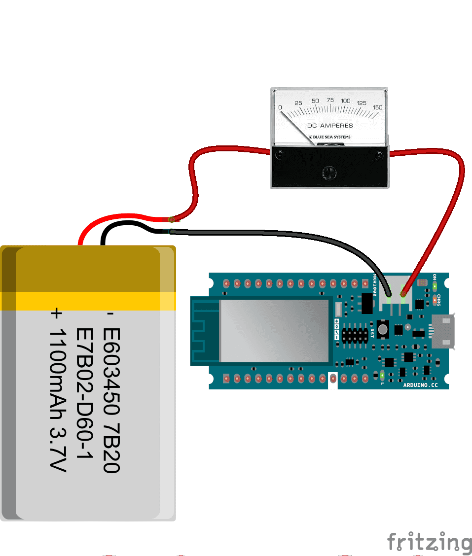 This tutorial gives an overview on how to determine the duration of a rechargeable battery connected to an Arduino MKR1000. Using a simple formula, it is possible to calculate how long a charge can last. The duration is related to the current drawn by the board under different conditions that depend on the sketch and the hardware functionalities used. In this example we use a LiPo battery rated at 1400mAh.