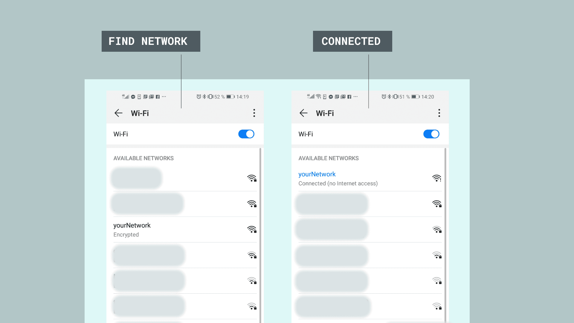 - On our phone or laptop, we can now find the access point in the list of available Wi-Fi networks.
