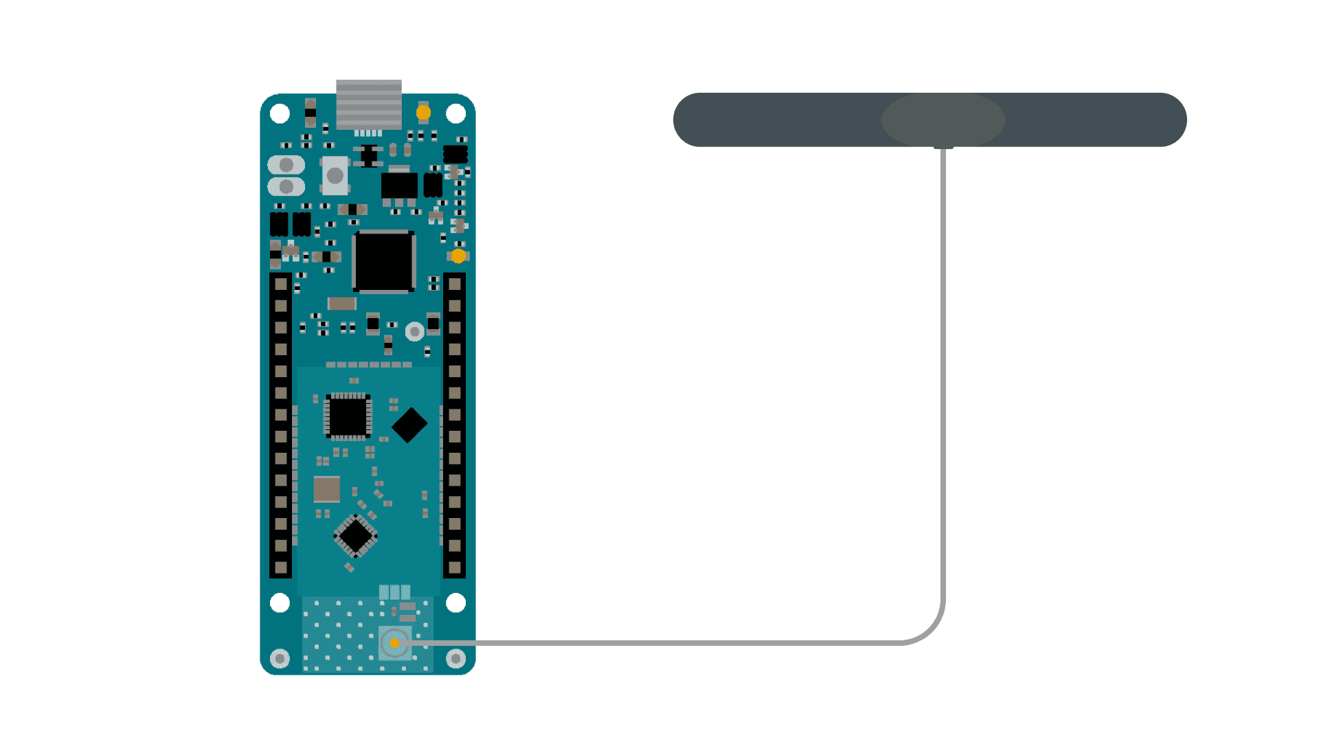 Connect the antenna to the MKR FOX 1200 board as shown in the image below.