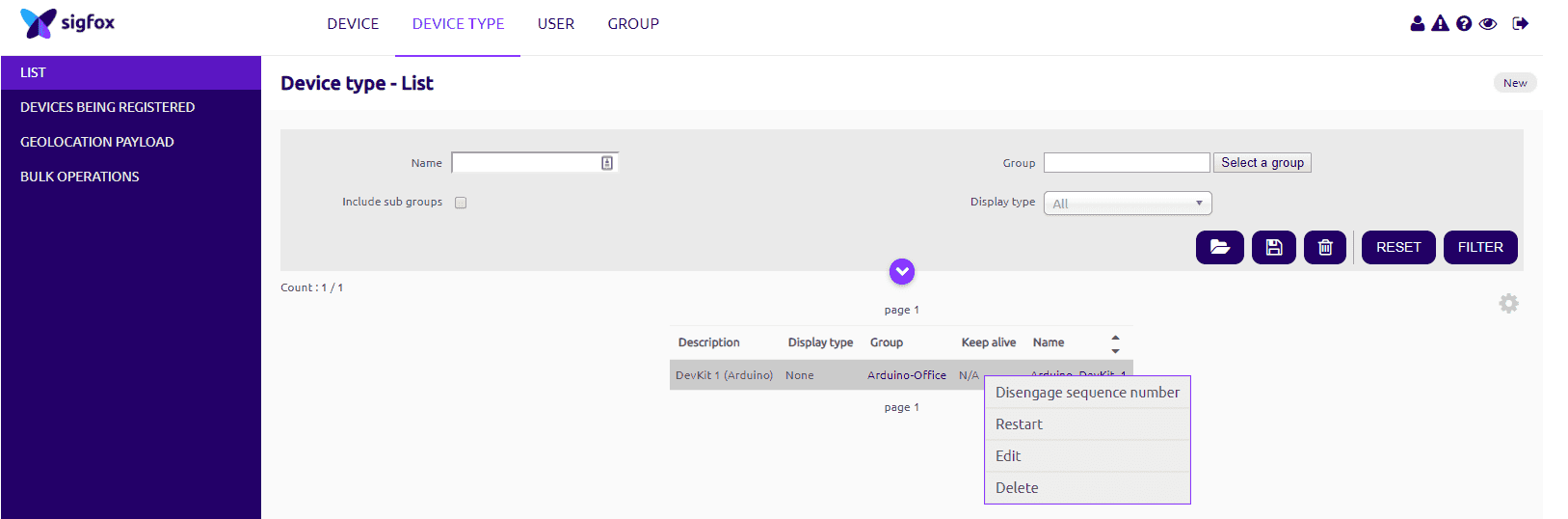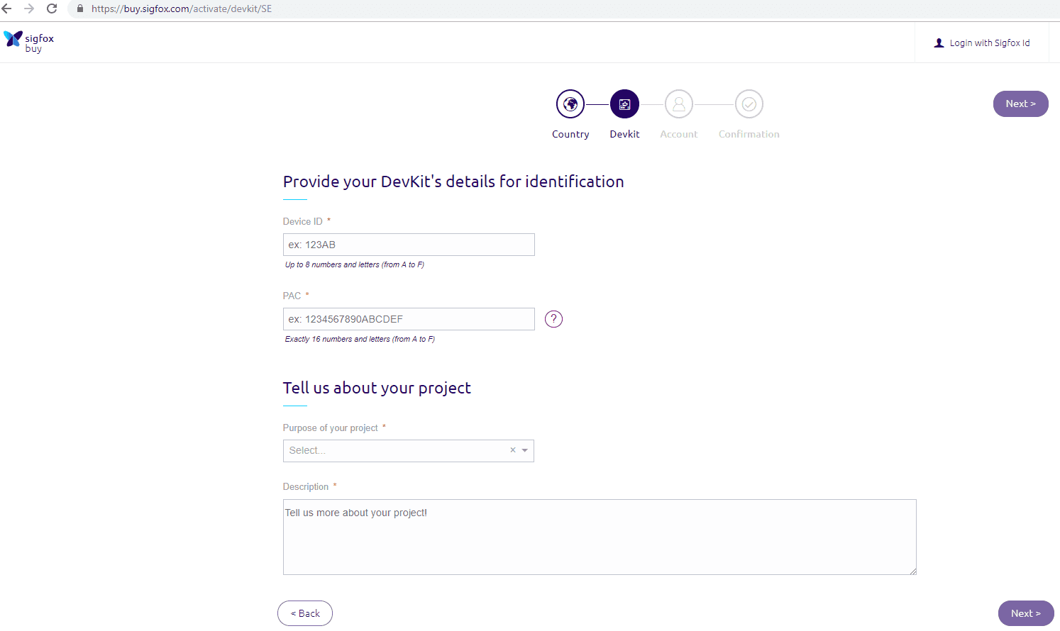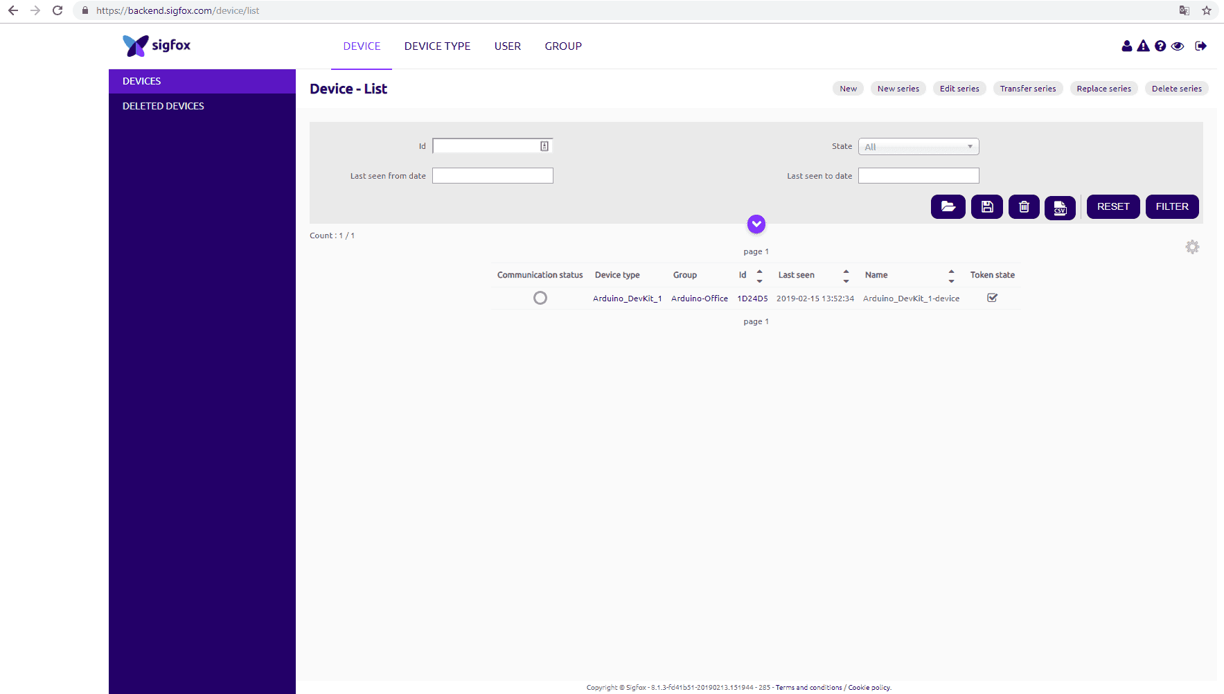 Now you can go back to the main Sigfox portal page and click on the Device on Top left, then click on the ID as shown in the image below.