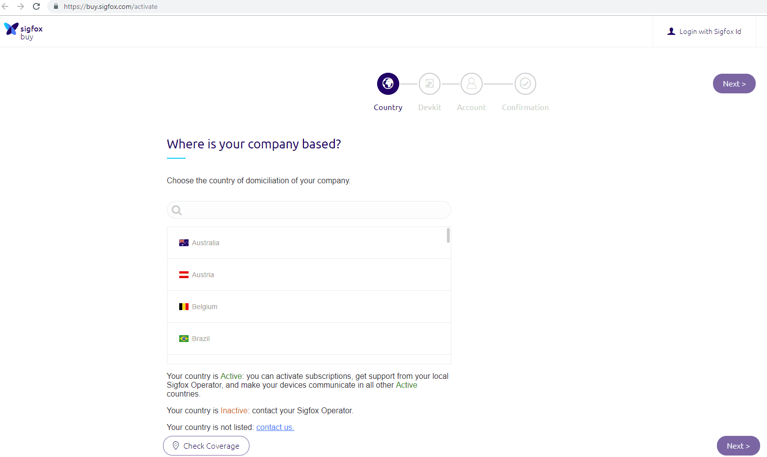 To register you board you have to navigate to the SigFox backend. This is an one time registration process, needed once for every MKR FOX 1200 you own.