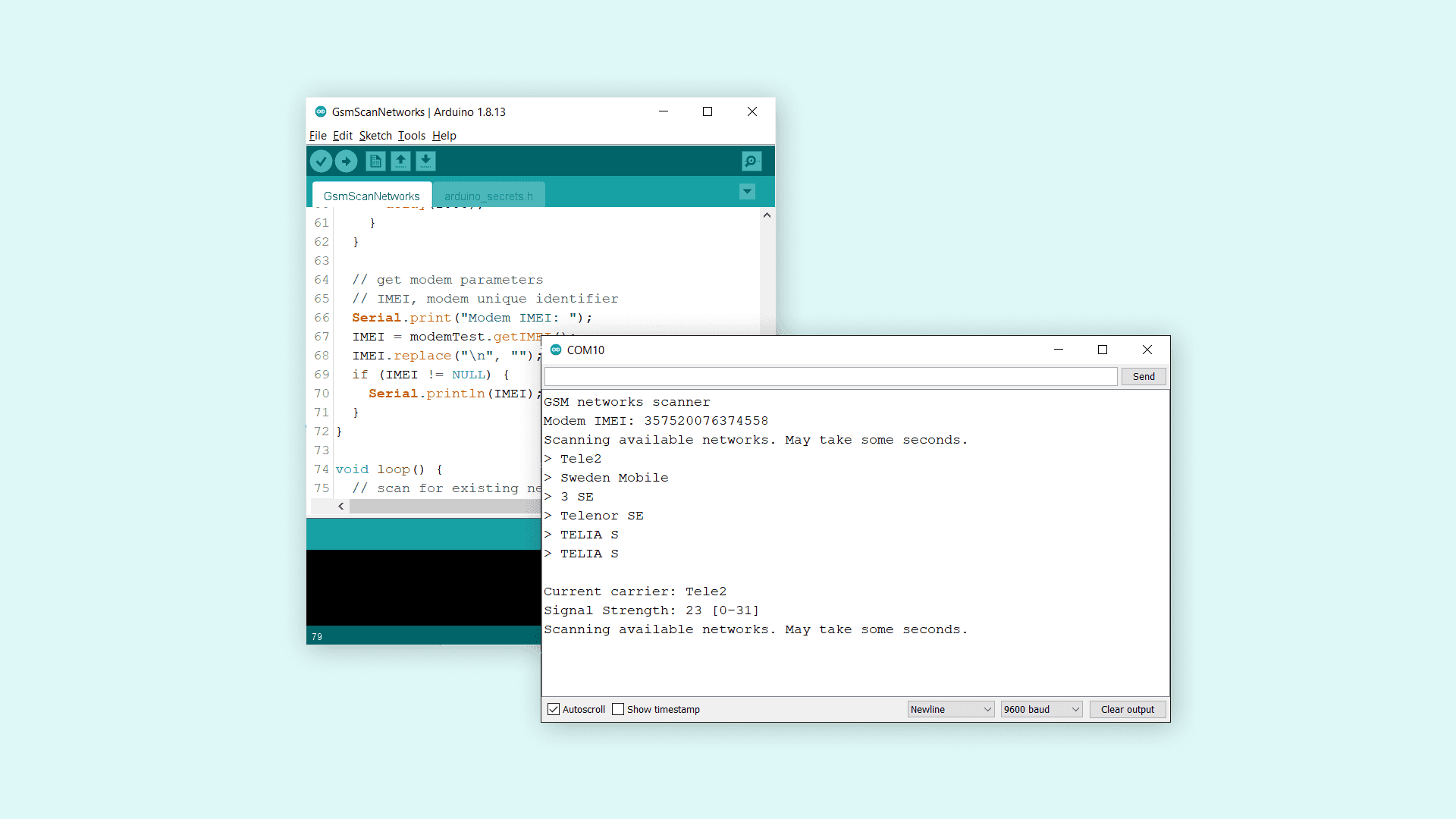 In this tutorial, we will perform a scan of available GSM networks in the area. The networks available will then be printed in the Serial Monitor along with the signal strength.