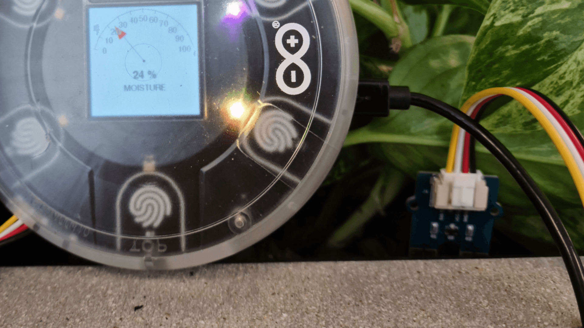 We will also connect a soil moisture sensor, and together with the sensors onboard the MKR IoT Carrier, we will create a sophisticated smart garden setup, capable of: