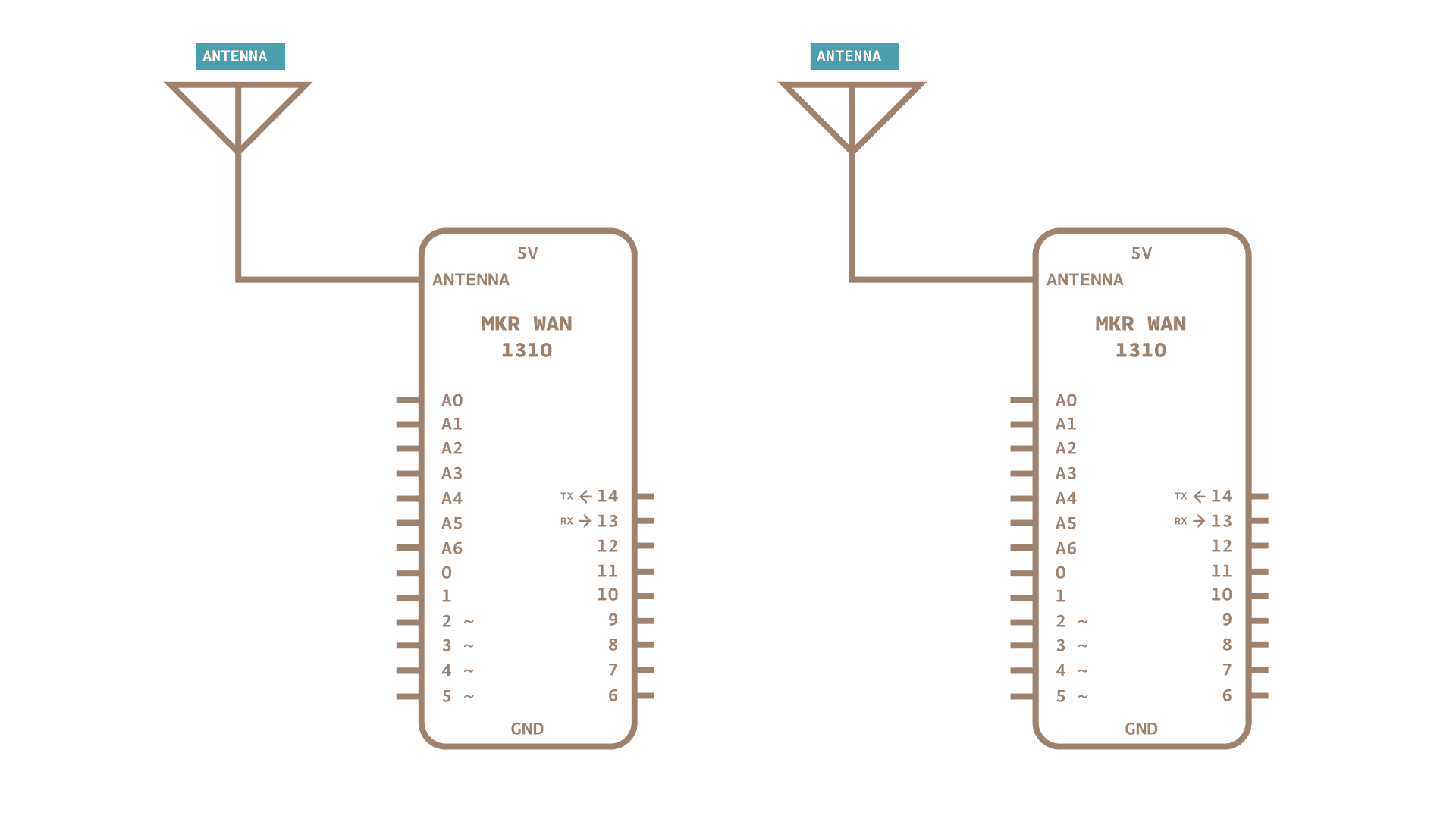 Follow the wiring diagram below to connect the antennas to the MKR WAN 1310 boards.