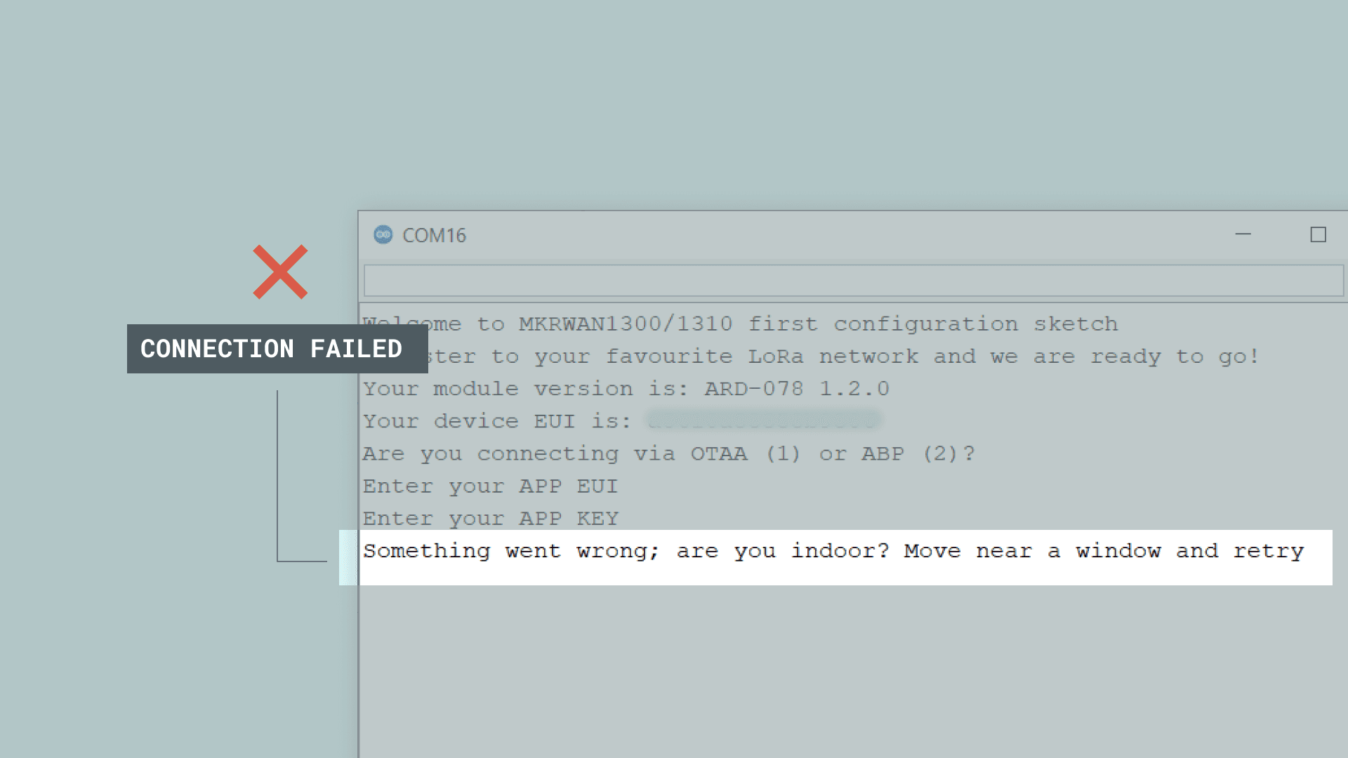 1Something went wrong; are you indoor? Move near a window and retryThis means we have not been able to connect to TTN.