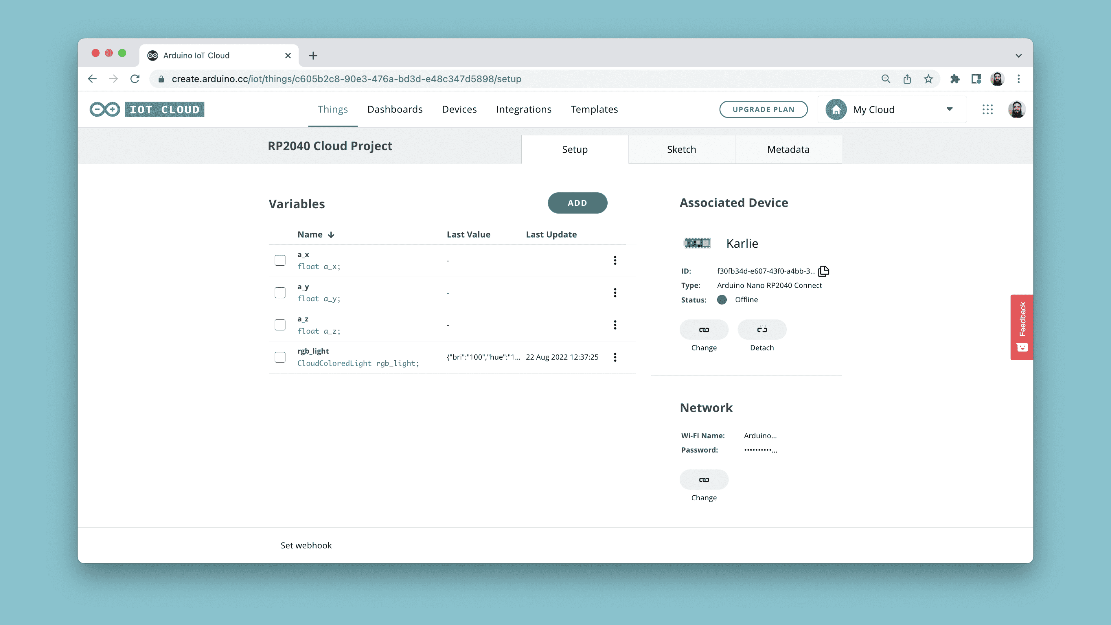 Setting up Nano RP2040 Connect with Arduino Cloud