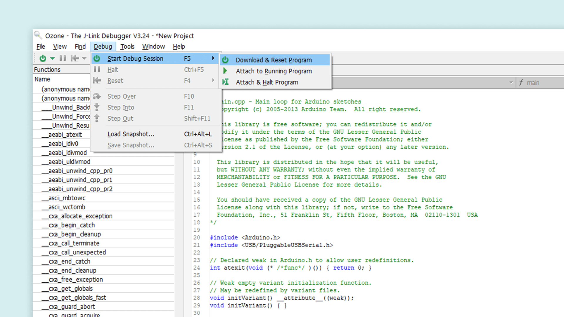 Download and install Segger's Ozone debugger. If you are on Windows, make sure to also download the J-Link Software and Documentation Pack for Windows.