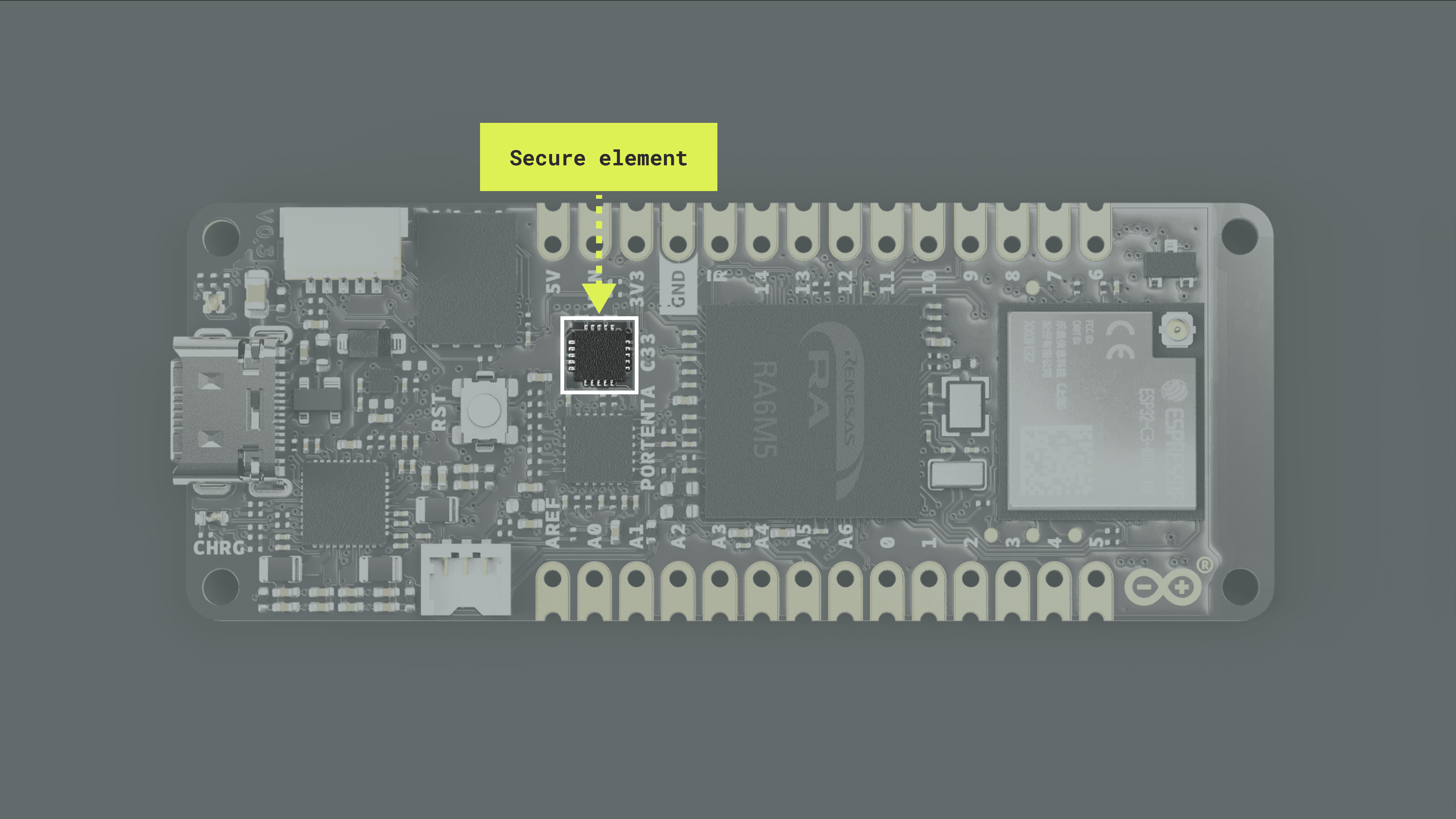 The SE050 is a ready-to-use IoT secure element that provides a root of trust at the IC level and gives an IoT system state-of-the-art, edge-to-cloud security capability. It allows for securely storing and provisioning credentials and performing cryptographic operations for security-critical communication and control functions. The Arduino Renesas Core has a built-in library that lets you use the secure onboard element right out of the box, the