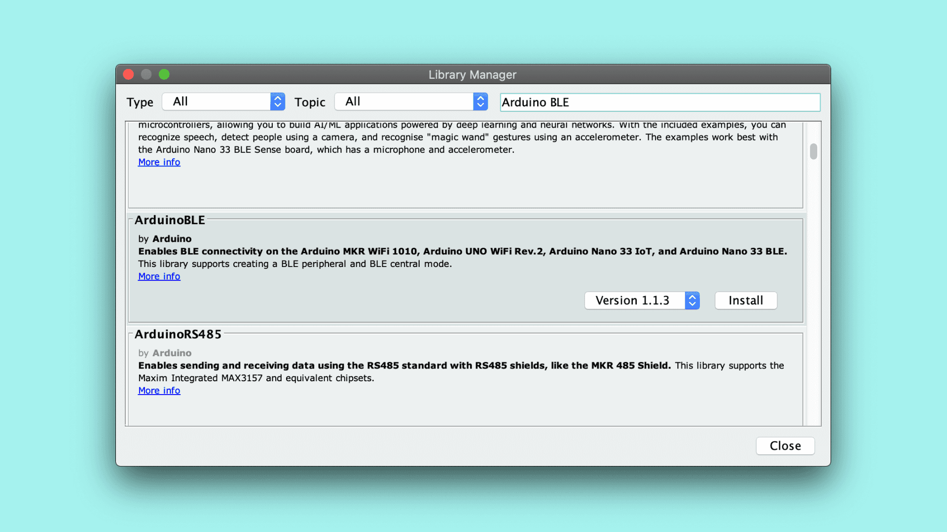 18 // Begin initialization19 if (!BLE.begin()) {20 Serial.println("Starting Bluetooth® Low Energy failed!");21 digitalWrite(LEDR, LOW);22 delay(1000);23 digitalWrite(LEDR, HIGH);24