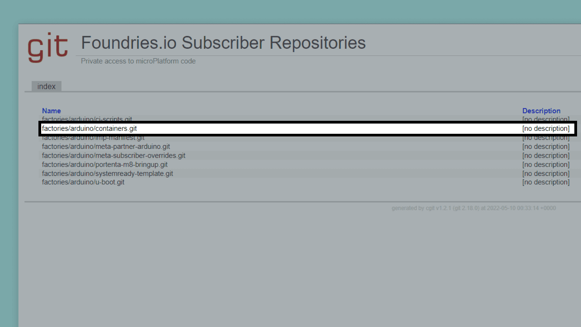 1git clone https://source.foundries.io/factories/YOUR_FACTORY/containers.git -b develPut the "x8-custom-test" folder in the repository and push it with git. When you have put the folder into the git folder, use