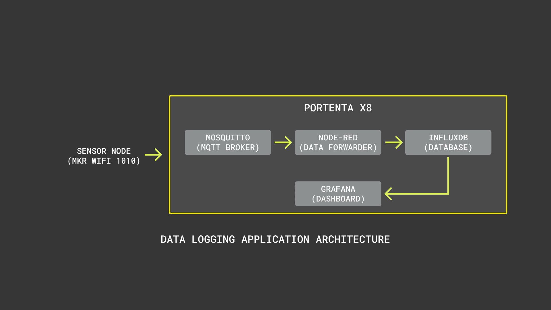 - Send data from an Arduino® MKR WiFi 1010 board to the data logging application running locally in the Portenta X8
