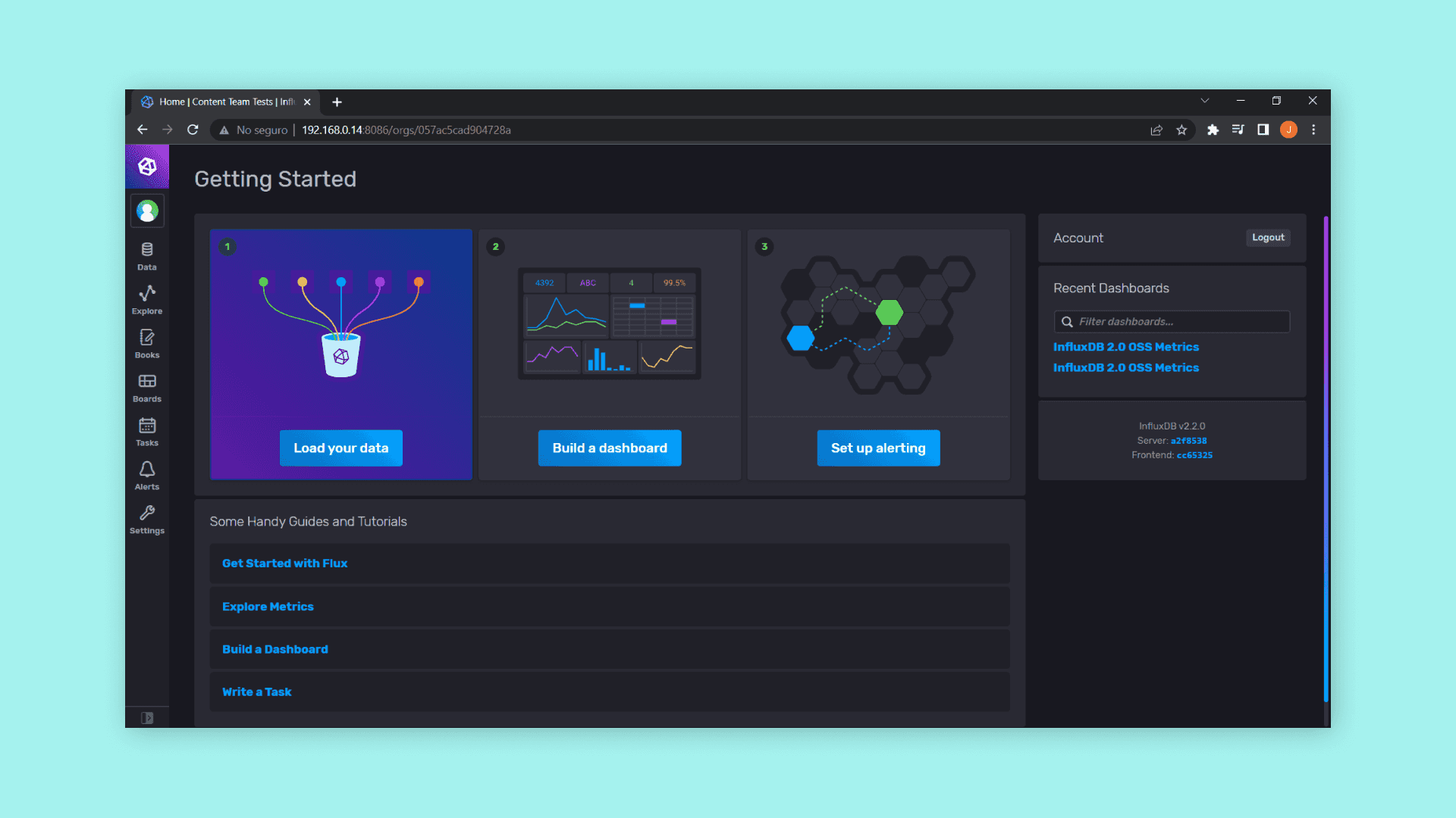 http://{your-portenta-ip}:8086; this will open the InfluxDB desktop as shown in the image below: