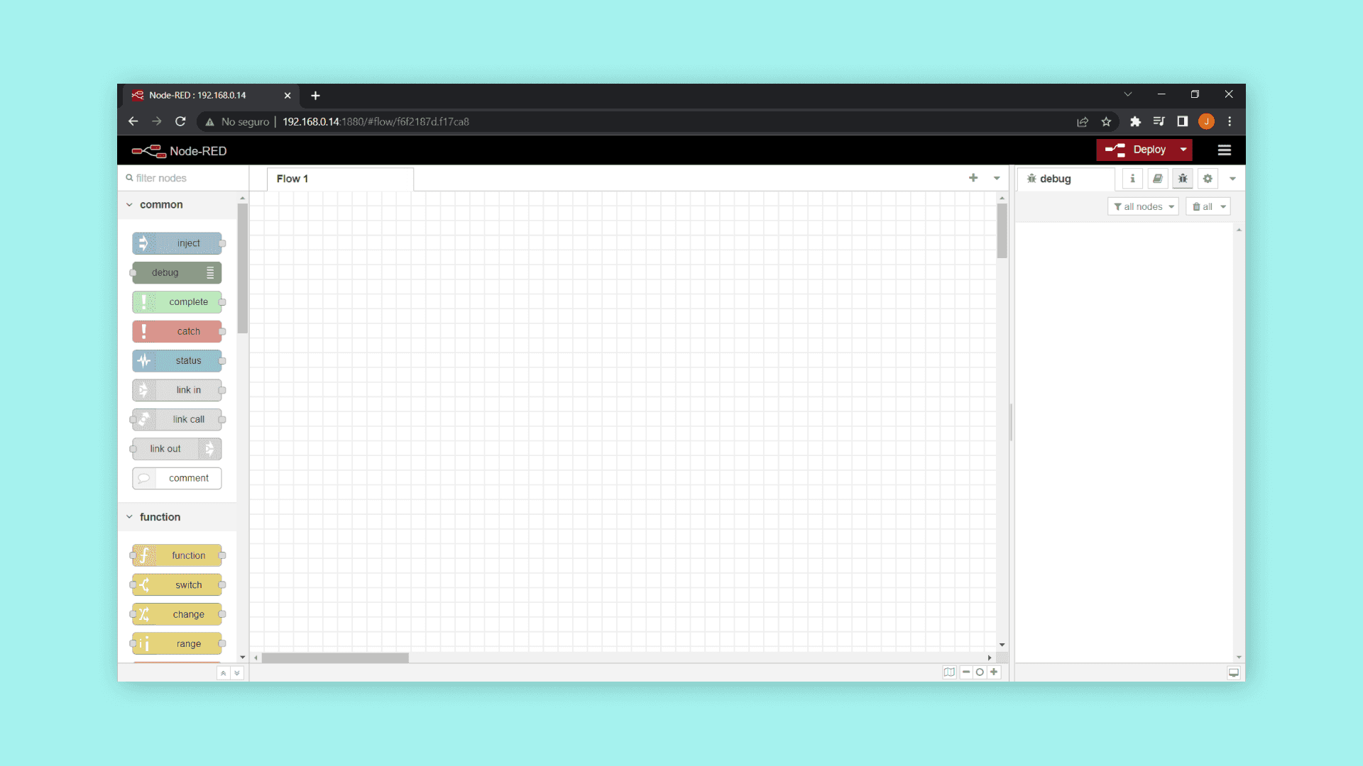 http://{your-portenta-ip}:1880; this will open the Node-RED desktop as shown in the image below: