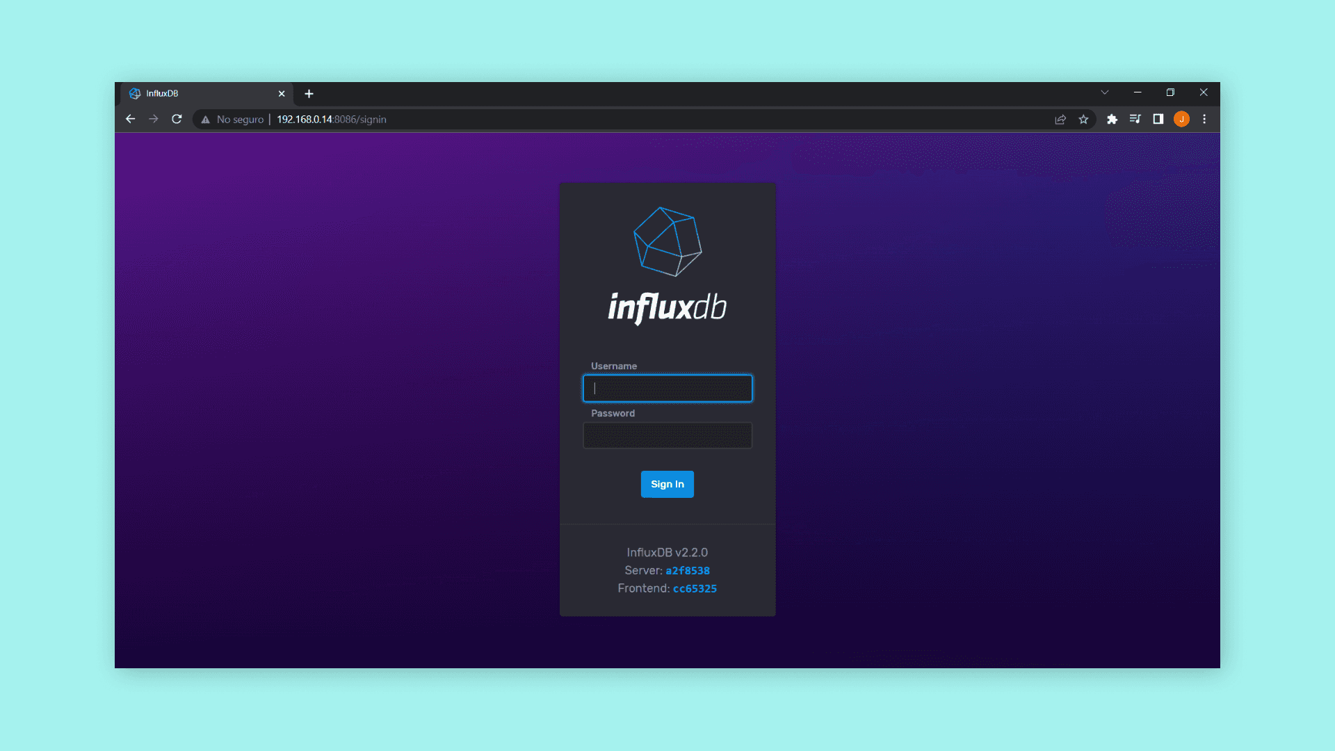 http://{your-portenta-ip}:8086 - User: Your defined username in InfluxDB