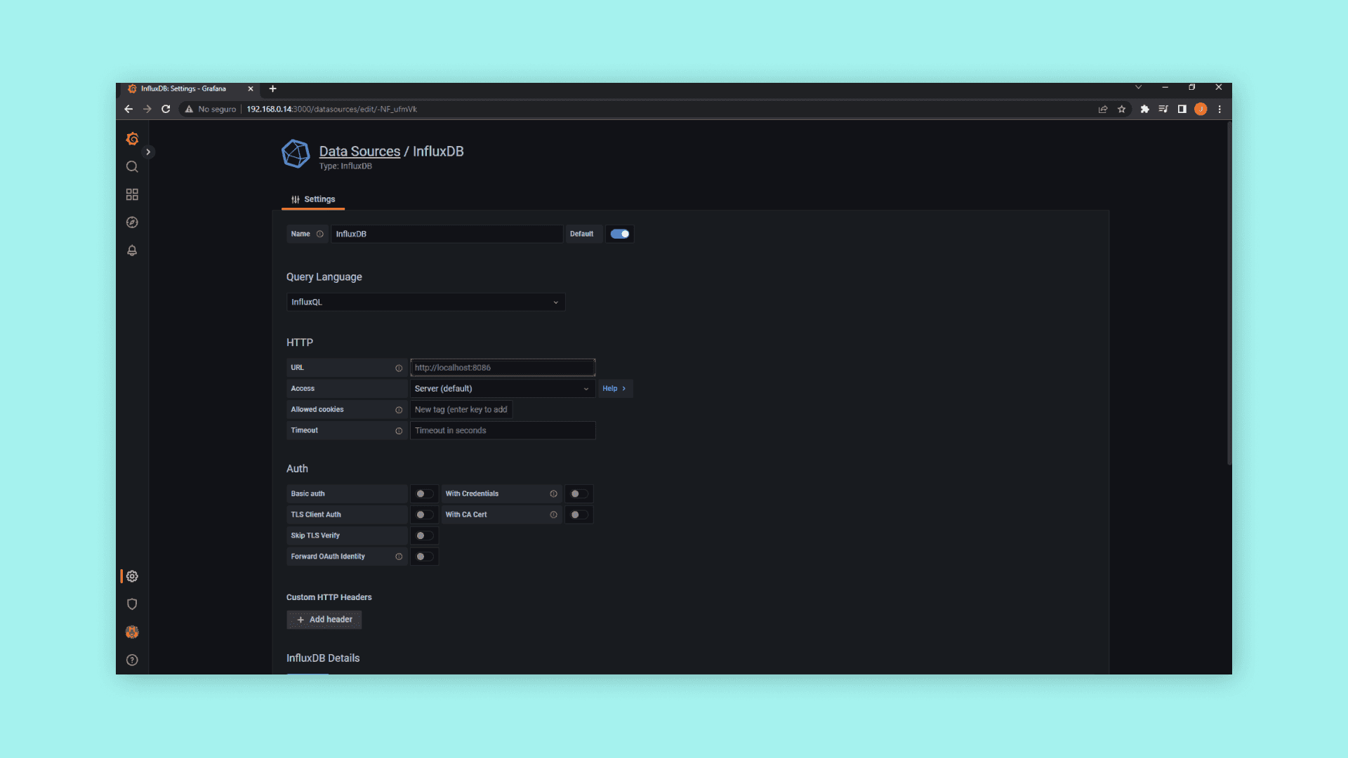 On the "Data Sources" page, select InfluxDB; this will take you to a configuration page:
