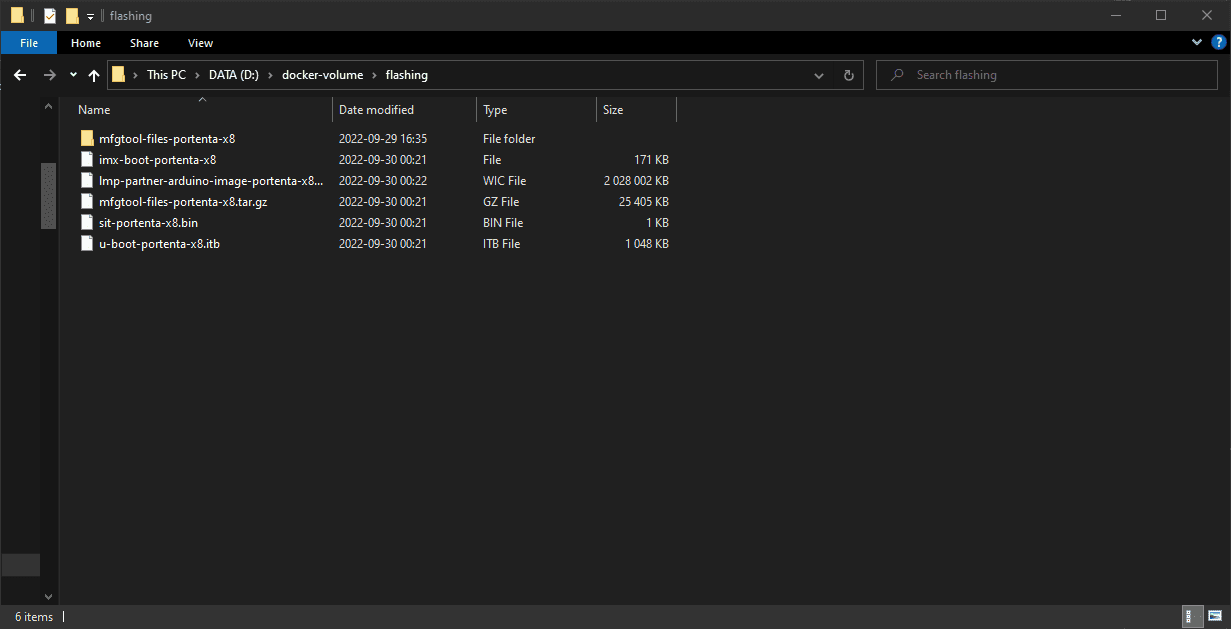 11cd $DEPLOY_FOLDER12tar xvf mfgtool-files-portenta-x8.tar.gzYou will be able to see the copied files in your OS file explorer.