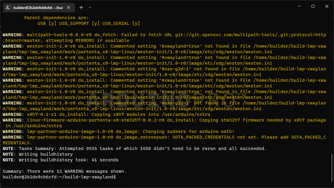 5cp -L build-lmp-mfgtool/deploy/images/portenta-x8/mfgtool-files-portenta-x8.tar.gz $DEPLOY_FOLDER6cp -L build-lmp-xwayland/deploy/images/portenta-x8/imx-boot-portenta-x8 $DEPLOY_FOLDER7cp -L build-lmp-xwayland/deploy/images/portenta-x8/u-boot-portenta-x8.itb $DEPLOY_FOLDER8cp -L build-lmp-xwayland/deploy/images/portenta-x8/sit-portenta-x8.bin $DEPLOY_FOLDER9cp -L build-lmp-xwayland/deploy/images/portenta-x8/lmp-partner-arduino-image-portenta-x8.wic $DEPLOY_FOLDER10